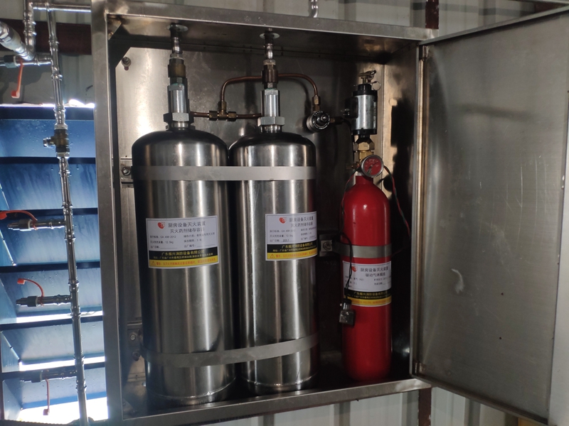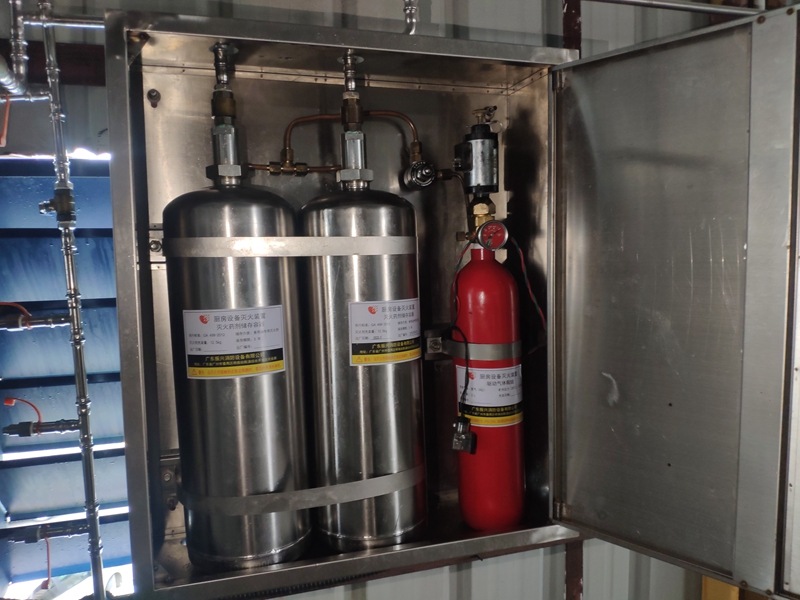 廚房設(shè)備滅火裝置是固定安裝于工業(yè)廚房、商業(yè)廚房及民用廚房等高濕熱環(huán)境中,由滅火劑貯存容器組件、驅(qū)動(dòng)氣體貯存容器組件、管路、噴嘴、閥門及其驅(qū)動(dòng)裝置、感溫器、控制裝置、燃?xì)忾y等組成,能在發(fā)生火災(zāi)時(shí)自動(dòng)探測并實(shí)施滅火的成套裝置。